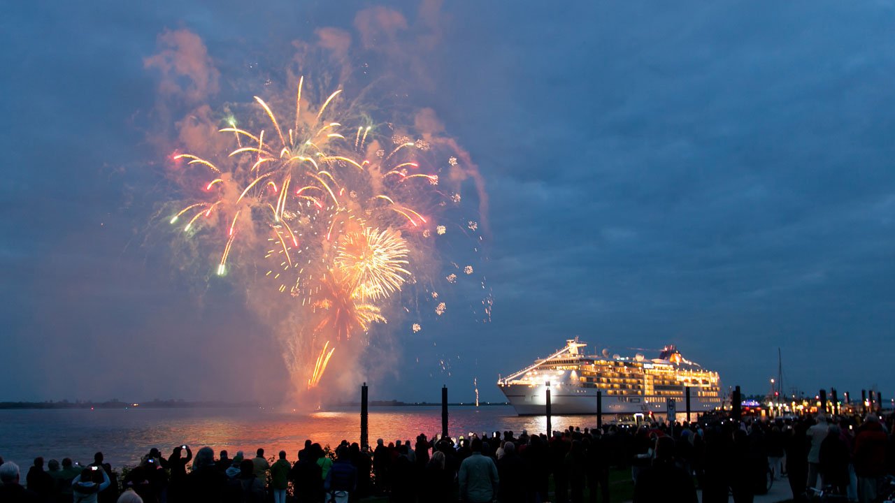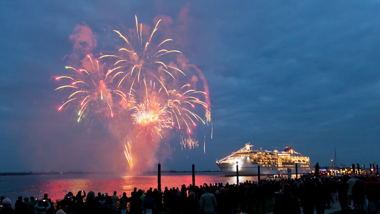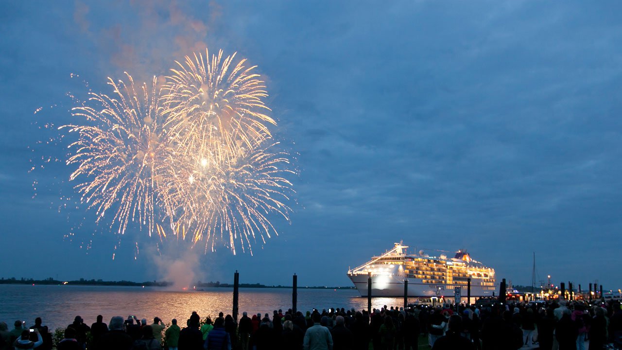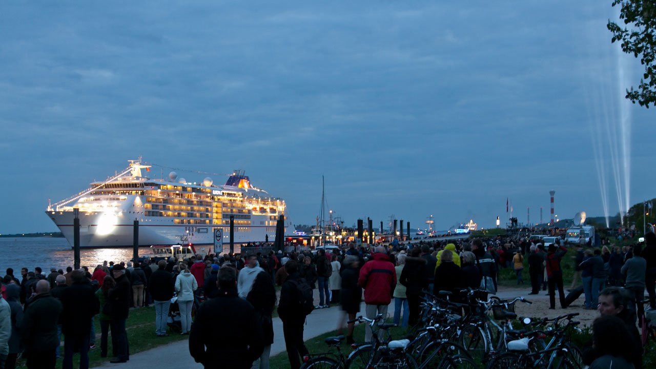 Der Hafengeburtstag dieses Mal mit Programm vor Blankenese. Taufe der MS Europa 2 und Showprogramm des Blankeneser Yachtclubs.